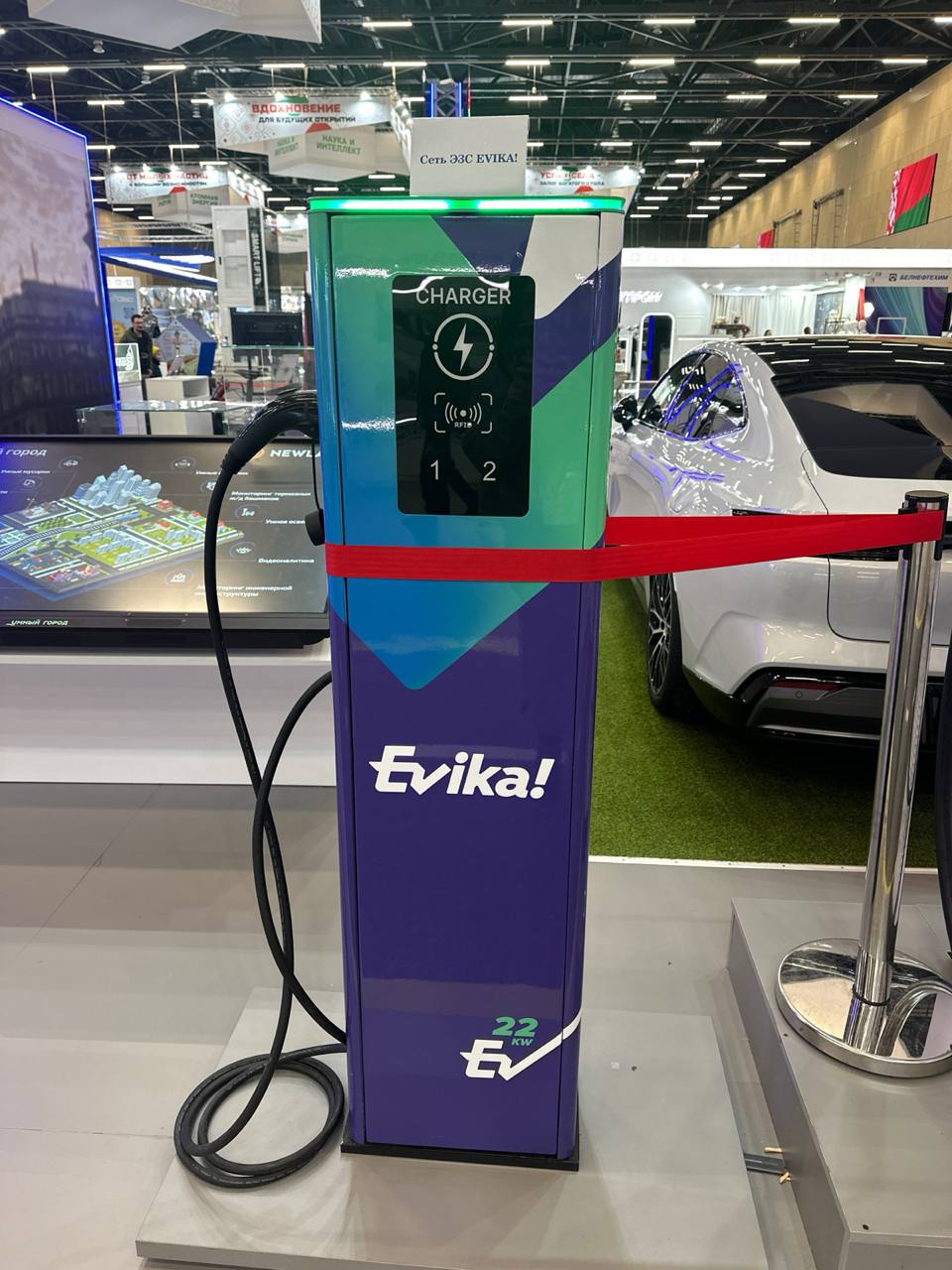 РУП «Белтелеком» знакомит посетителей с электрозарядной станцией «Evika!». Станции размещаются в локациях, где пользователи услуги планируют длительное пребывание в течение дня: городские спальные районы и парковки возле мест работы. Учитывая тренд на популяризацию электромобилей, выпущенных в КНР, предприятием проработано и реализовано решение по оснащению электрозарядных станций разъемом GB/T AC для зарядки китайских электромобилей переменным током. Все двухпостовые ЭЗС, введенные в эксплуатацию в 2024 году, оснащены соответствующим разъемом.