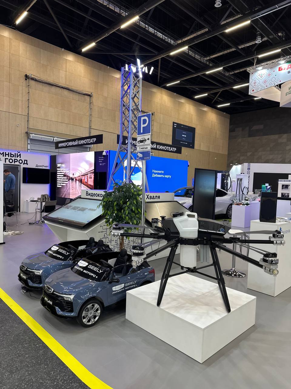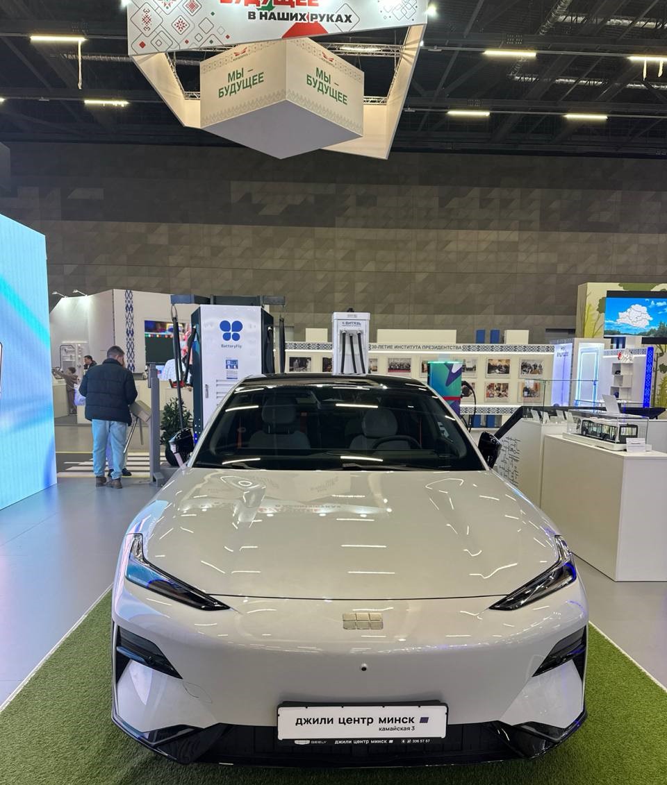 На выставке «Моя Беларусь» в кластере «Умный город» представлен электромобиль Geely Galaxy E8 и масштабная модель перронного электробуса MA3 271, предназначенного для перевозки пассажиров в аэропортах.