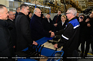 Глава государства поинтересовался, каким образом на предприятии реализуется политика импортозамещения. Как было отмечено, к производству подключены и другие предприятия системы Министерства промышленности, а также частные компании. Одни выпускают сиденья, другие — амортизаторы и так далее. По отдельным моделям уровень локализации достигает 80%.