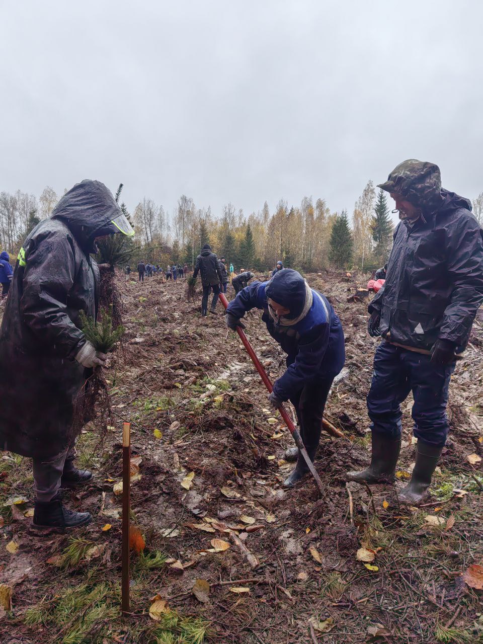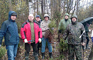 Сотрудники ГУ «БелИСА» вместе с представителями ГКНТ, НЦИС, Белинфонда и РНТБ поддержали инициативу и высадили более 500 саженцев дуба и ели на территории 2,5 гектара Руденского лесничества в Минской области.