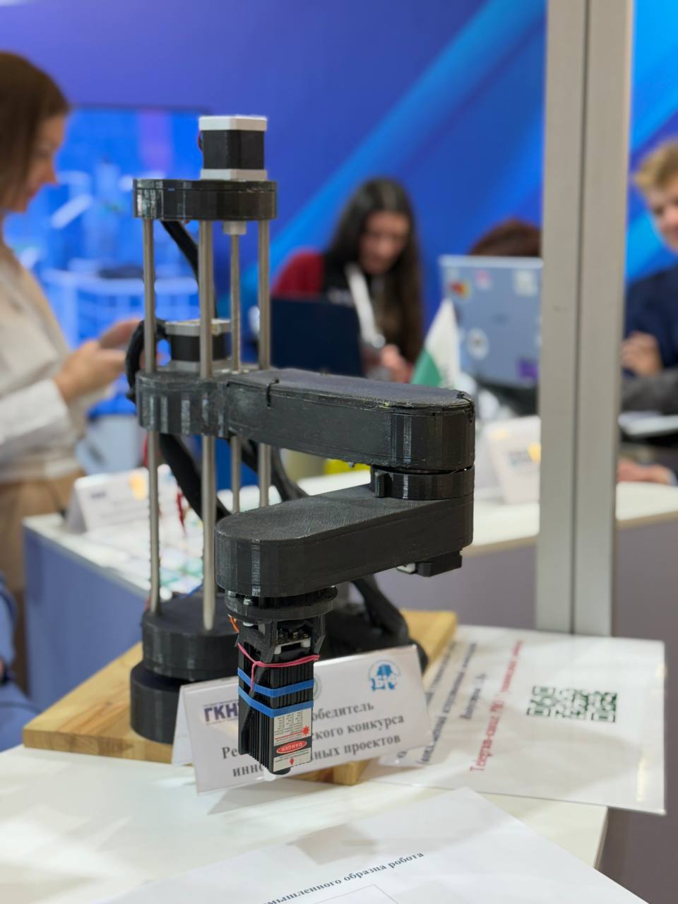 Интеллектуальный промышленный робот, основными функциями которого являются упаковка, погрузочно-разгрузочные работы, паллетизация, депаллетизация, перемещение объектов, обслуживание станков, сварка (Белорусский инновационный фонд, проекты победителей Республиканского конкурса инновационных проектов).