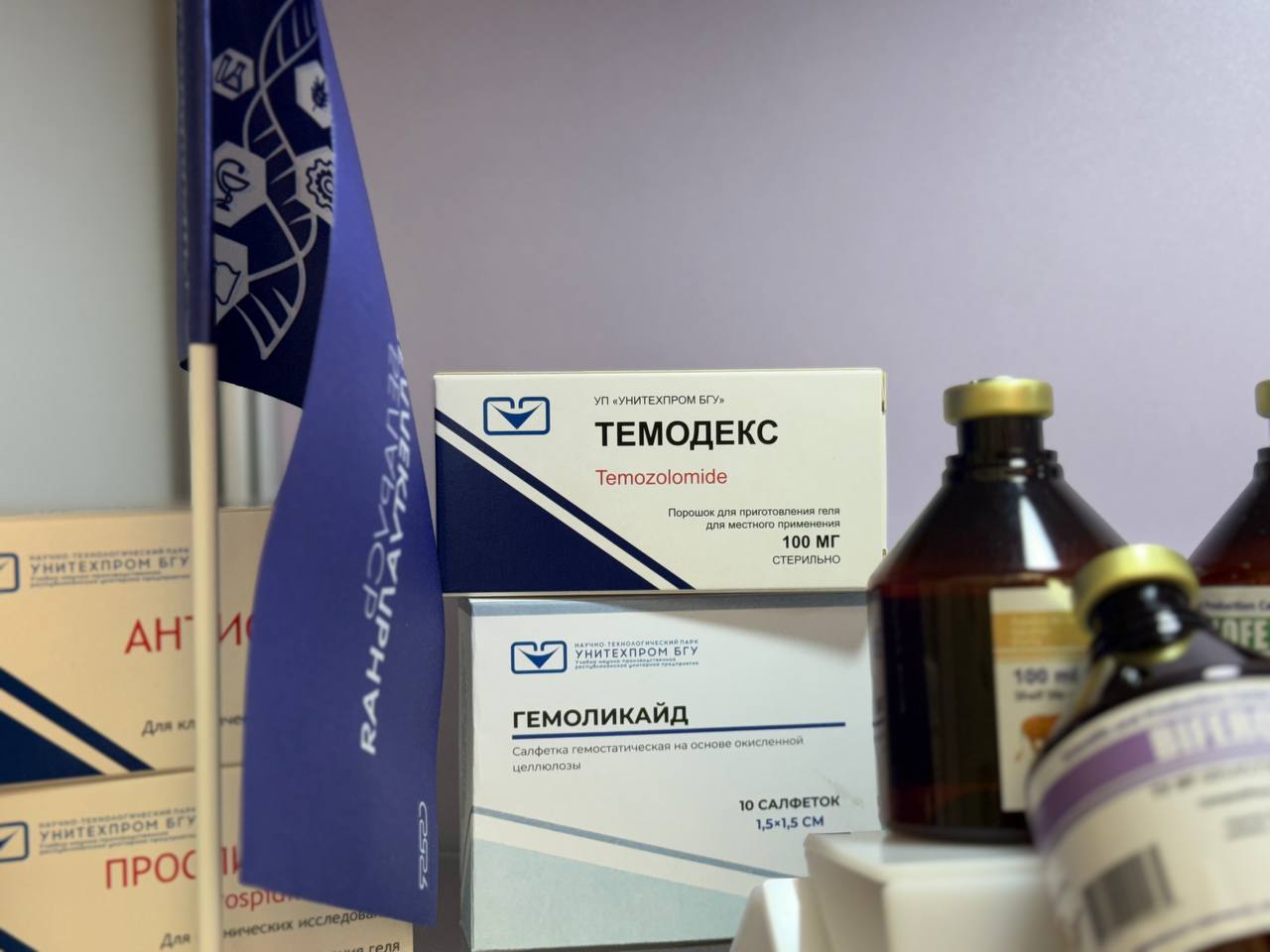 6. Противоопухолевое средство «Проспиделонг» для лечения больных раком желудка с диссеминированным поражением брюшины; фармацевтические субстанции и лекарственные препараты локального противоопухолевого действия «Цисплацел» и «Теродекс» (УП «Унитехпром БГУ»).