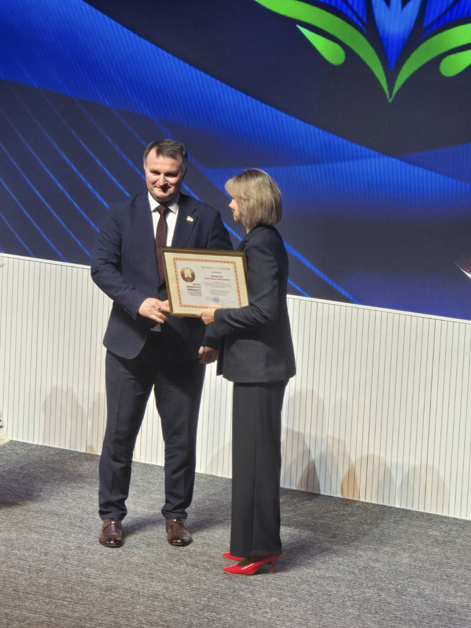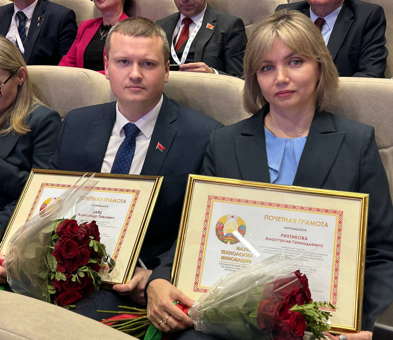 За многолетнюю плодотворную работу, высокий профессионализм и активное участие в реализации государственной политики в сфере инновационной деятельности Почетная грамота Государственного комитета по науке и технологиям Республики Беларусь вручена заведующему отделом научно-методического обеспечения инновационного развития государственного учреждения "Белорусский институт системного анализа и информационного обеспечения научно-технической сферы" Анастасии Геннадьевне Рихтиковой.
